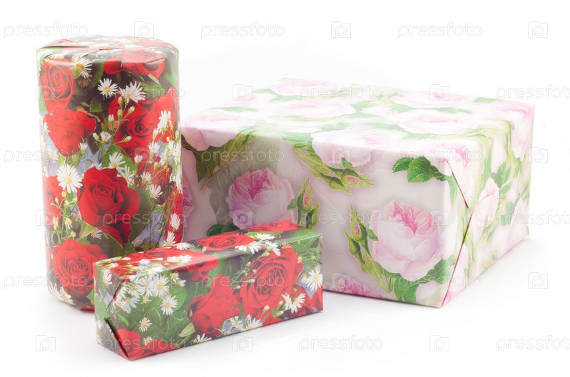Подарочные коробки с розами на белом фоне