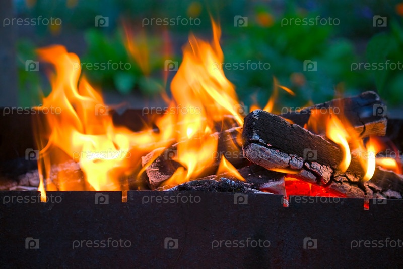 Огонь и угли в мангале