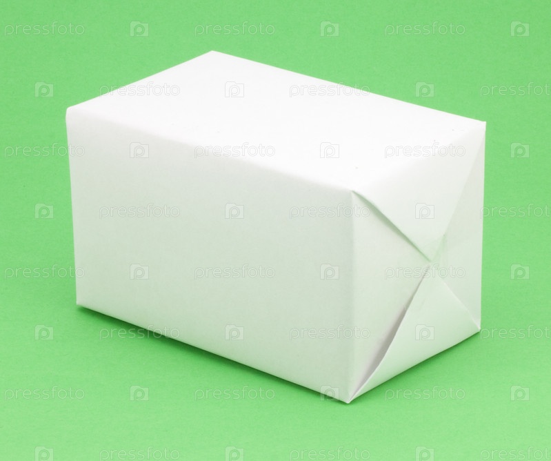 Белая бумажная коробка на зеленом фоне