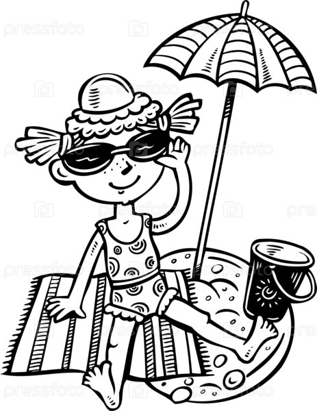 Девочка загорает на пляже