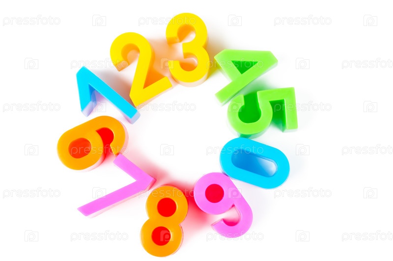 Круг, выложенный из пластмассовых цифр, изолированный на белом фоне