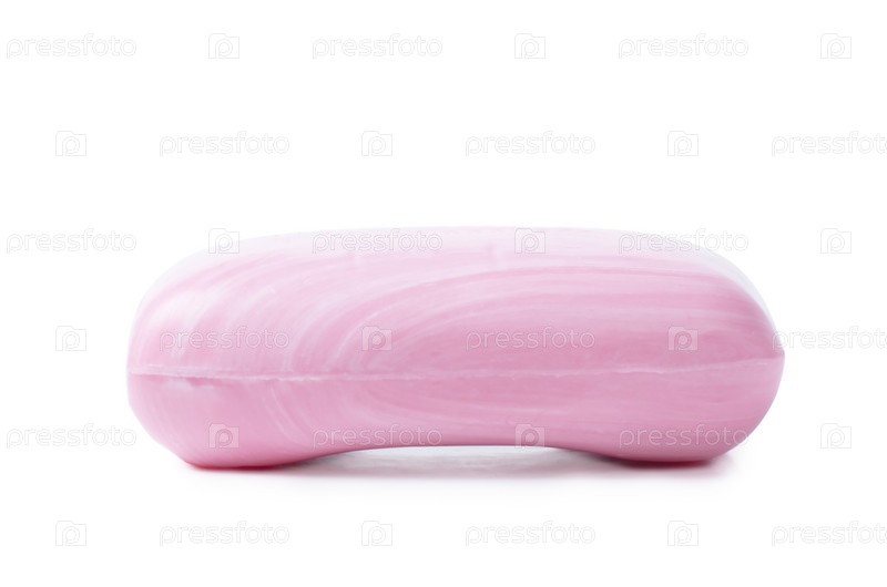 Розовое мыло, изолированное на белом фоне