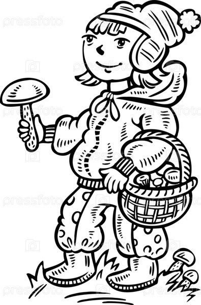Девочка собирает грибы