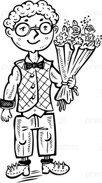 Мальчик с букетом цветов
