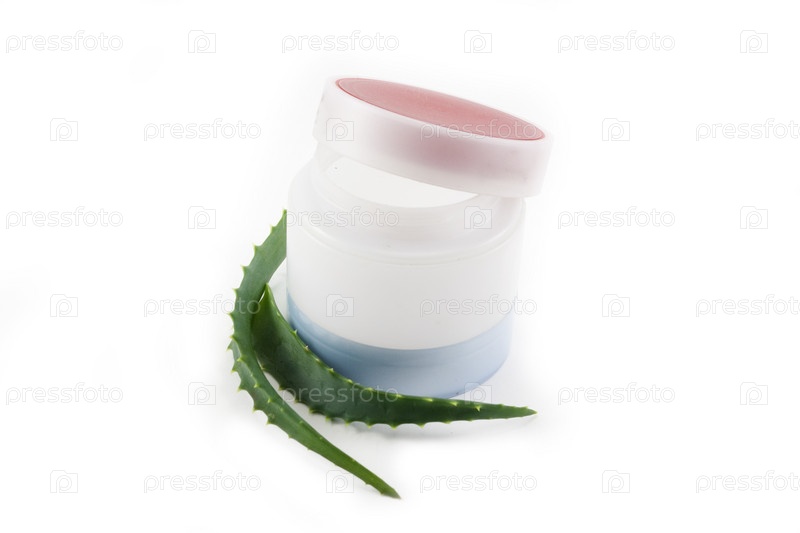 Банка натурального крема с алоэ на белом фоне