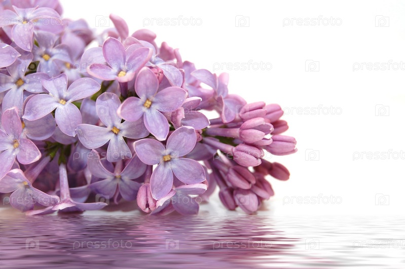 Цветущая ветка сирени на белом фоне