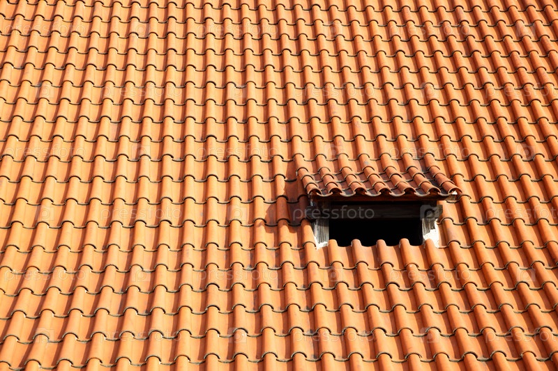 Старая красная черепичная крыша с маленьким окном