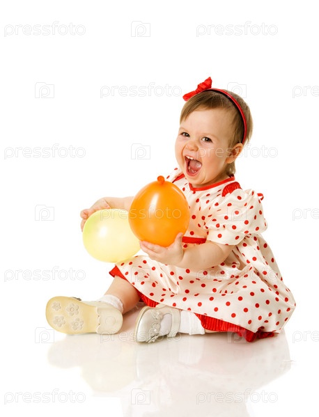 Веселая маленькая девочка с воздушными шариками