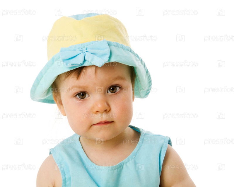 Маленькая девочка в панаме на белом фоне