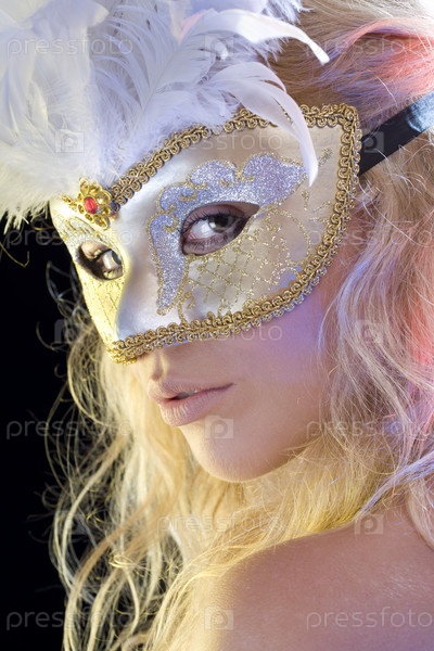 Девушка в карнавальной маске, крупный план