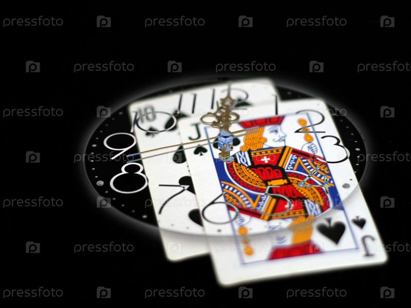 Часы на фоне игральных карт