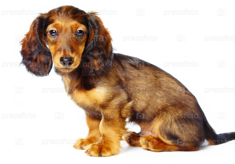 Щенок таксы на белом фоне