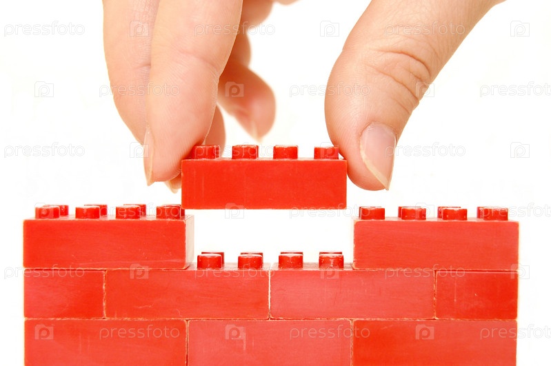 Процесс строительства из красного детского конструктора