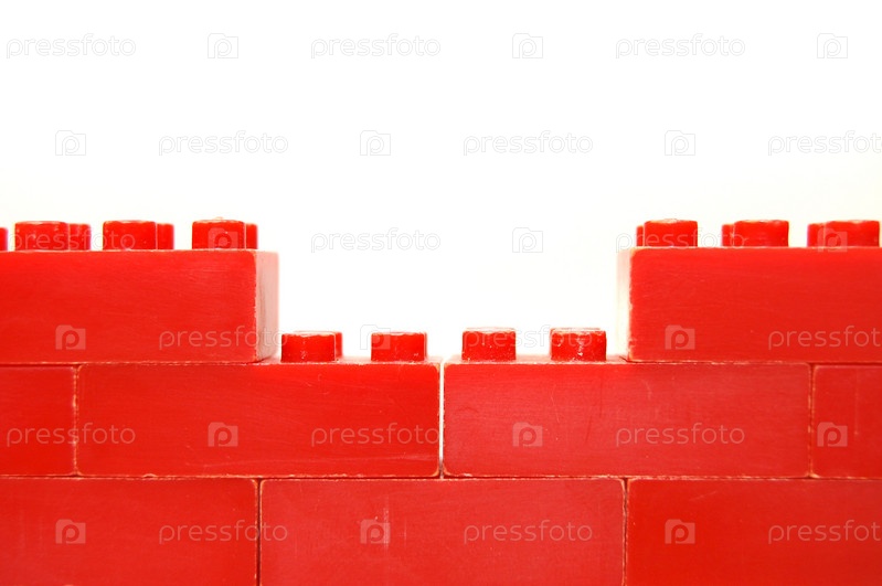 Стена, построенная из красного детского конструктора