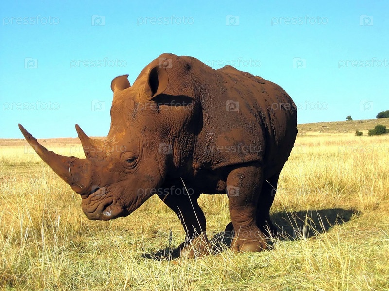 Носорог на саване в солнечный день