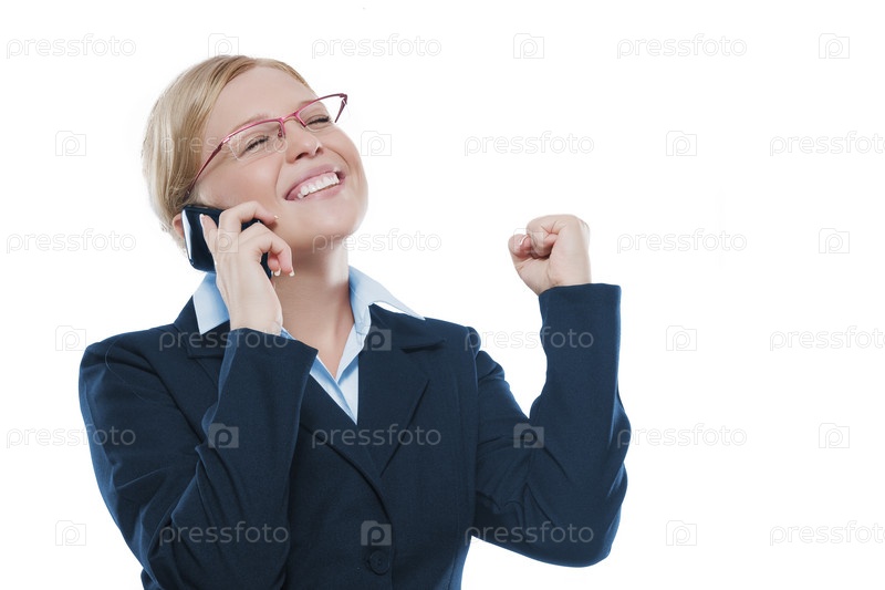 Смеющаяся деловая женщина разговаривает по телефону