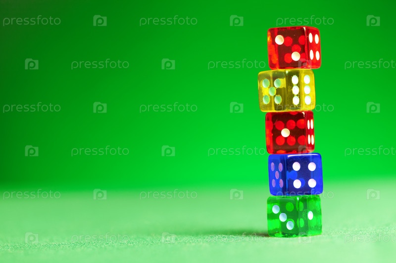 Разноцветные кубики на зеленом сукне