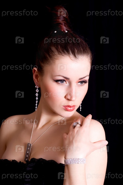 Портрет элегантной брюнетки на черном фоне