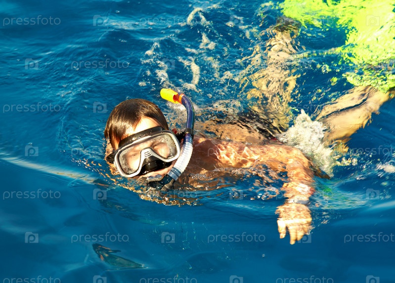 Мальчик плавает в море