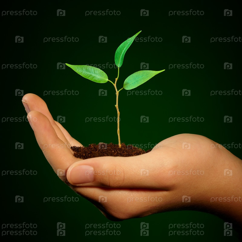Молодой росток в руке
