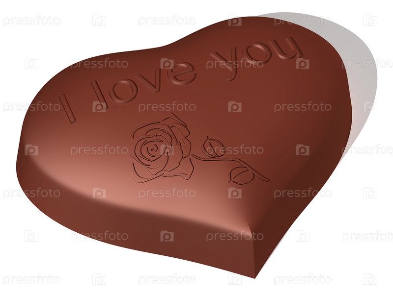 Шоколадная конфета в форме сердца с надписью и рисунком