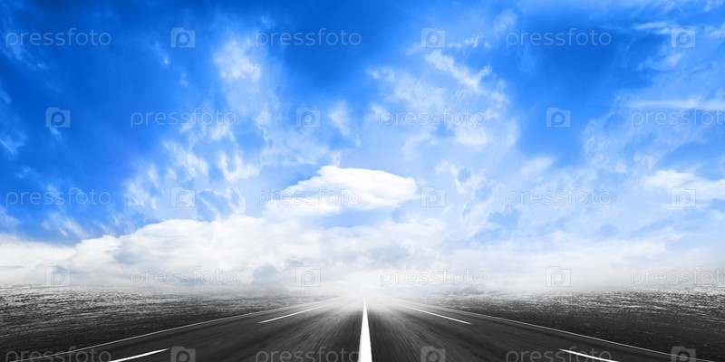 Облачное небо над пустой автомобильной дорогой