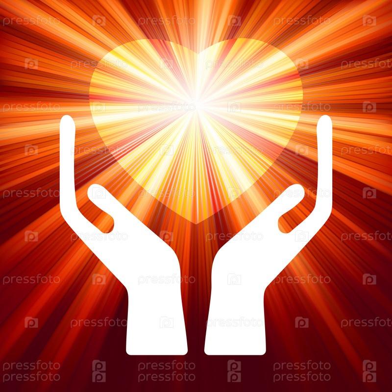 Сердце и ладони на ярком фоне