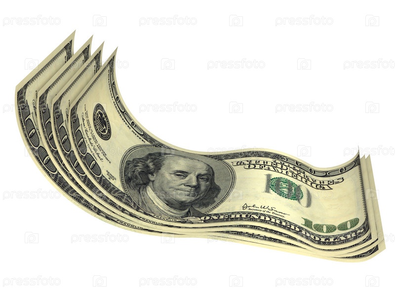 Пачка долларов со скрученными купюрами, изолированной на белом