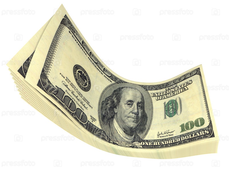 Пачка долларов со скрученными купюрами, изолированной на белом