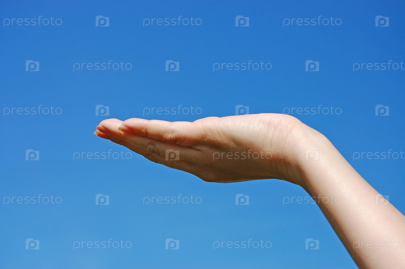 Протянутая ладонь на фоне синего неба