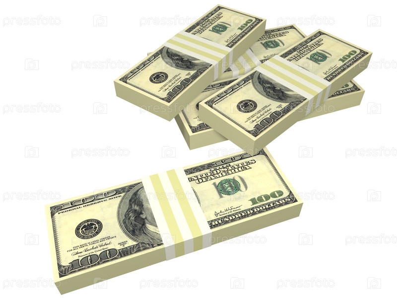 Пачка долларов со скрученными купюрами, изолированной на белом