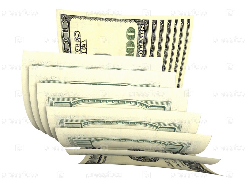 Пачка долларов со скрученными купюрами, изолированной на белом