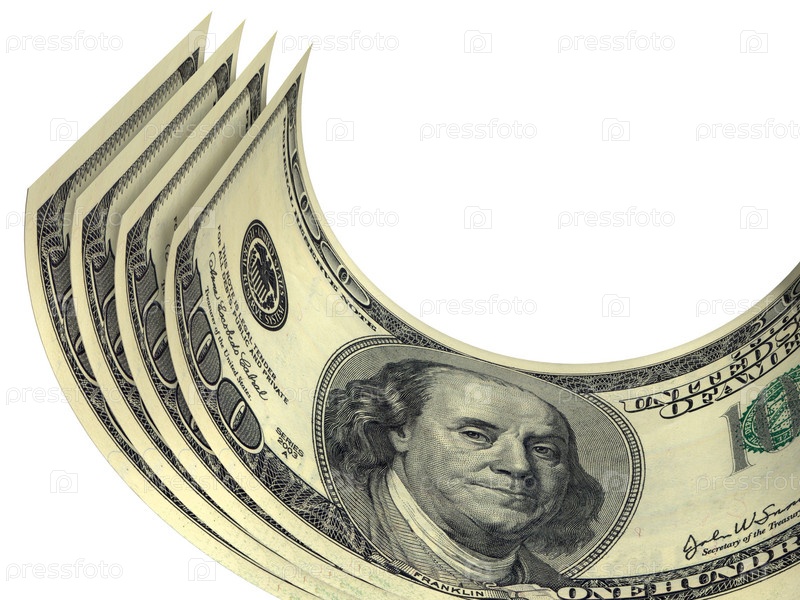 Пачка долларов со скрученными купюрами, изолированной на белом