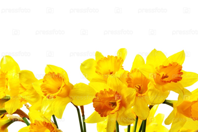 Желтые нарциссы на белом фоне