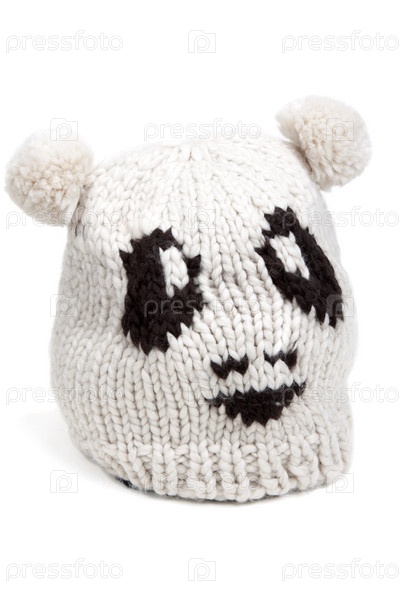 Теплая шапка с забавным рисунком на белом фоне