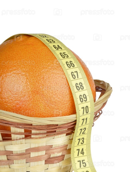 Грейпфрут с измерительной лентой в плетеной корзинке