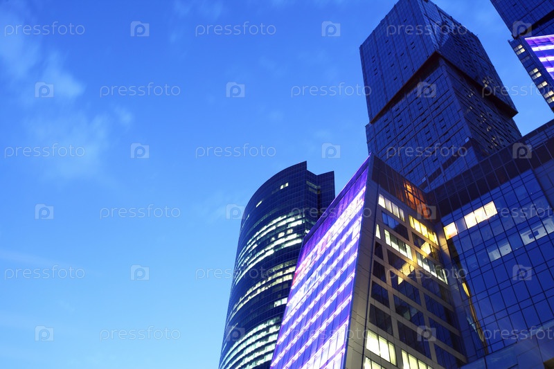 Современные небоскребы вечером. Москва-Сити, Россия