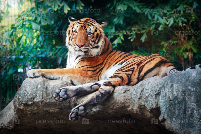 Портрет тигра, лежащего на скале в таиландском зоопарке