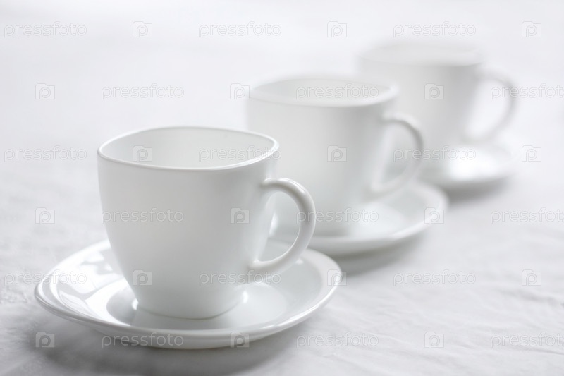 Белые чашки на блюдцах