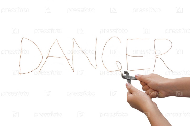 Слово "опасность", написанное металлической проволокой