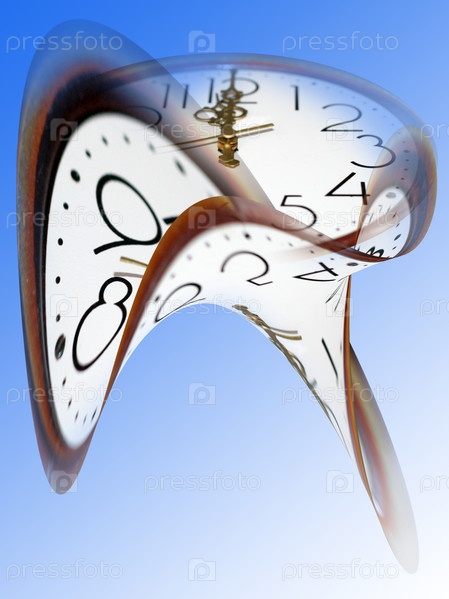 Изогнутые часы на голубом фоне