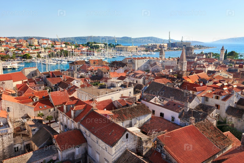 Панорамный вид на центр и порт города Трогир, Хорватия