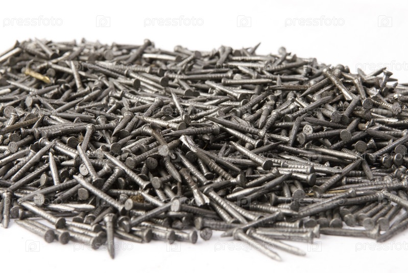 Железные гвозди на белом фоне