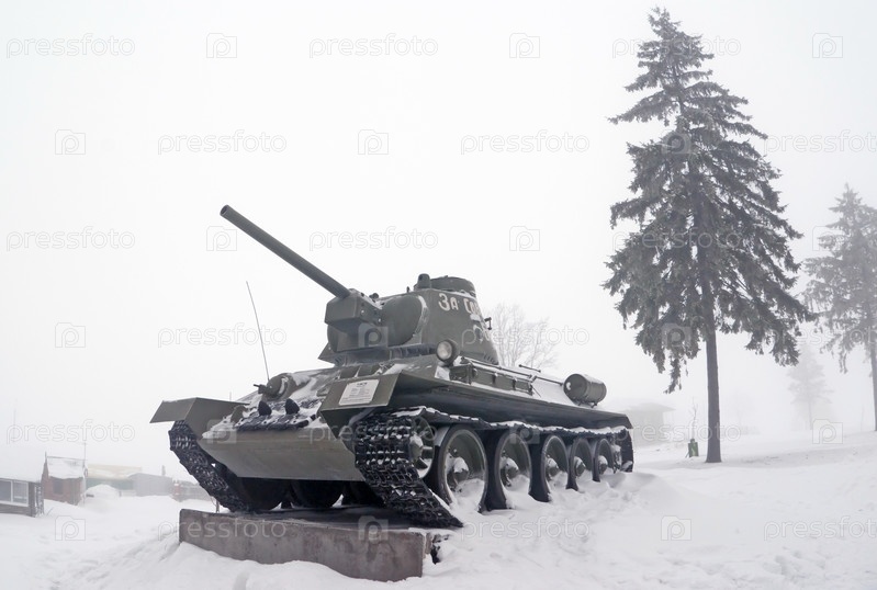 Танк Т-34 в снегу, музей "Линия Сталина", Беларусь
