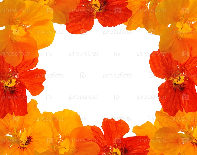 Рамка из оранжевых цветов на белом фоне