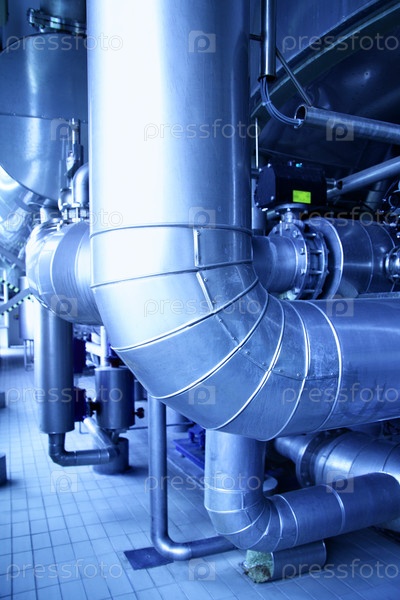 Трубы на заводе. Синий оттенок