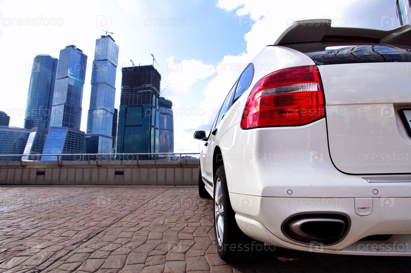 Автомобиль на фоне офисных зданий