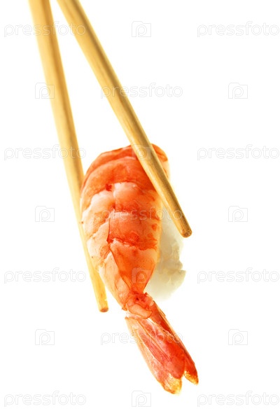 Суши с креветкой на белом фоне