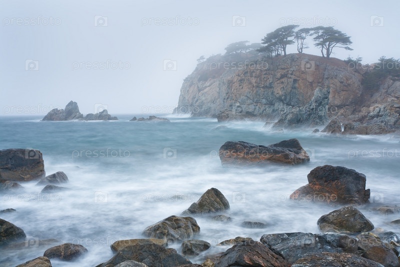 Скалистое морское побережье в ненастную погоду