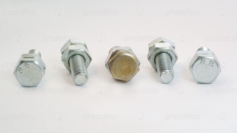 Новые металлические болты на сером фоне